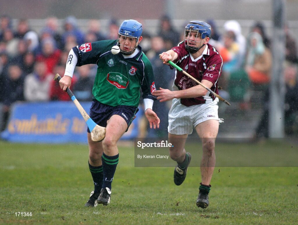 4 March 2005; Kieran Murphy, Limerick IT, in action against Gerry O'Grady, NUIG. Datapac Fitzgibbon Cup Semi-Final, Limerick IT v NUI Galway, Limerick Institute of Technology, Limerick. Picture credit; Kieran Clancy / SPORTSFILE