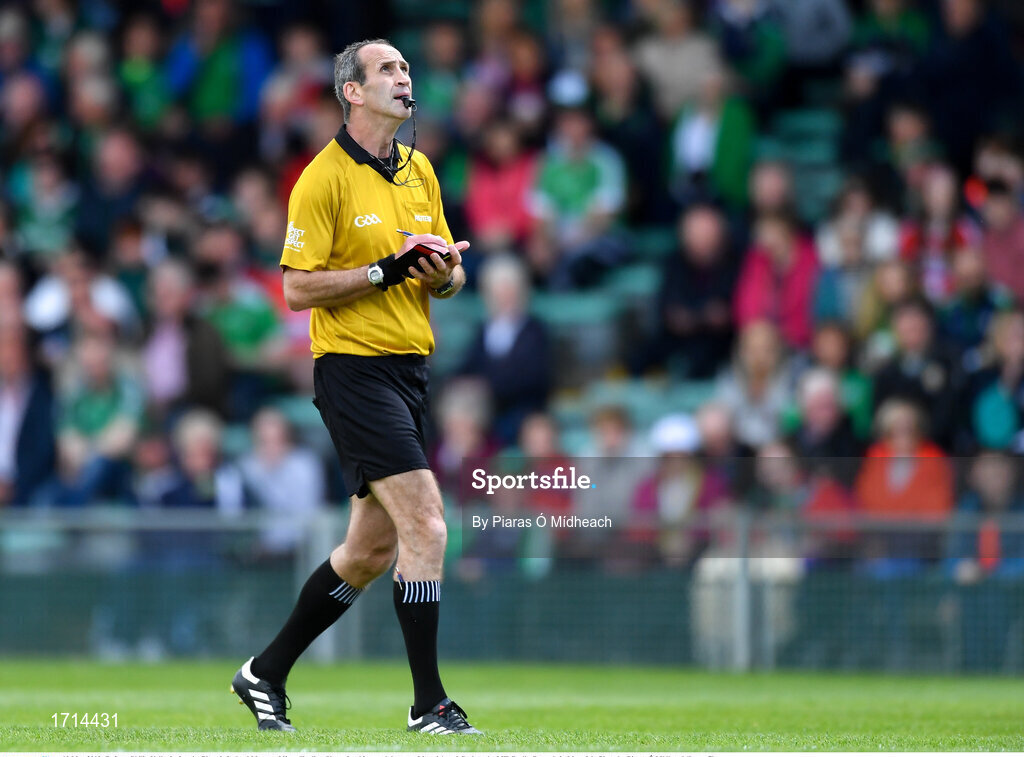 19 May 2019; Referee Philip Kelly during the Electric Ireland Munster Minor Hurling Championship match between Limerick and Cork at the LIT Gaelic Grounds in Limerick. Photo by Piaras Ó Mídheach/Sportsfile