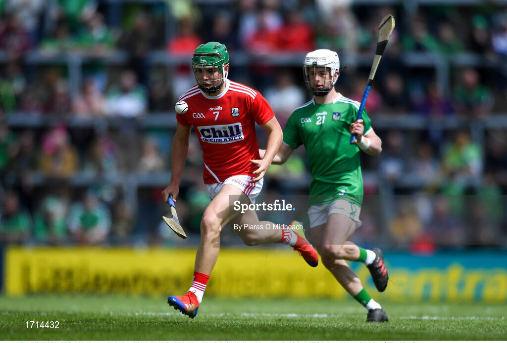19 May 2019; Brian O'Sullivan of Cork in action against Cian Casey of Limerick during the Electric Ireland Munster Minor Hurling Championship match between Limerick and Cork at the LIT Gaelic Grounds in Limerick. Photo by Piaras Ó Mídheach/Sportsfile