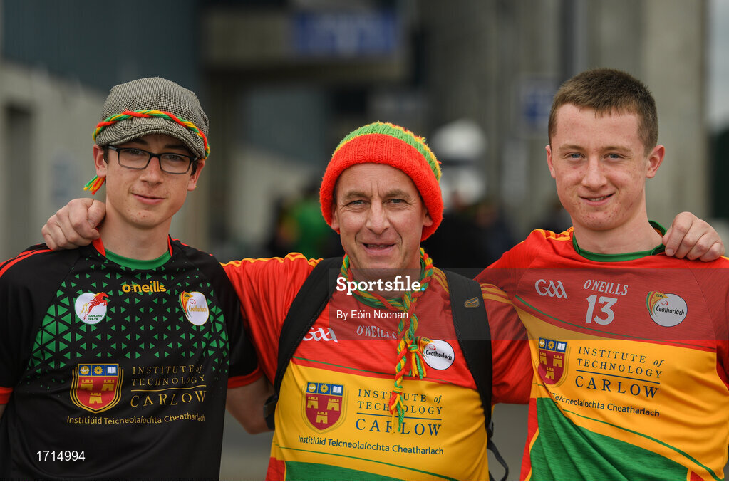 25 May 2019; Carlow supporters, from left, Darragh Byrne, PJ Byrne and Collin Byrne from Fenagh ahead of the Leinster GAA Football Senior Championship Quarter-Final match between Carlow and Meath at O’Moore Park in Portlaoise, Laois. Photo by Eóin Noonan/Sportsfile