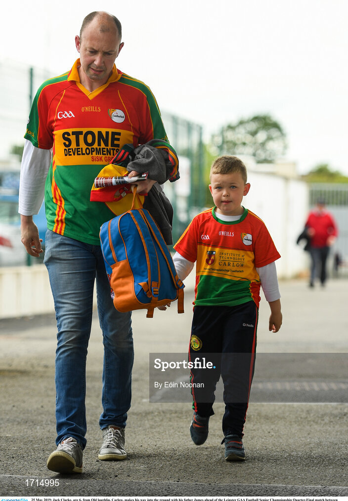 25 May 2019; Jack Clarke, age 6, from Old loughlin, Carlow, makes his way into the ground with his father James ahead of the Leinster GAA Football Senior Championship Quarter-Final match between Carlow and Meath at O’Moore Park in Portlaoise, Laois. Photo by Eóin Noonan/Sportsfile