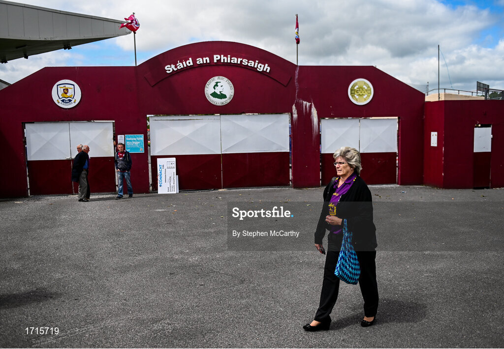 26 May 2019; A Wexford supporter arrives at Pearse Stadium prior to the Leinster GAA Hurling Senior Championship Round 3A match between Galway and Wexford at Pearse Stadium in Galway. Photo by Stephen McCarthy/Sportsfile