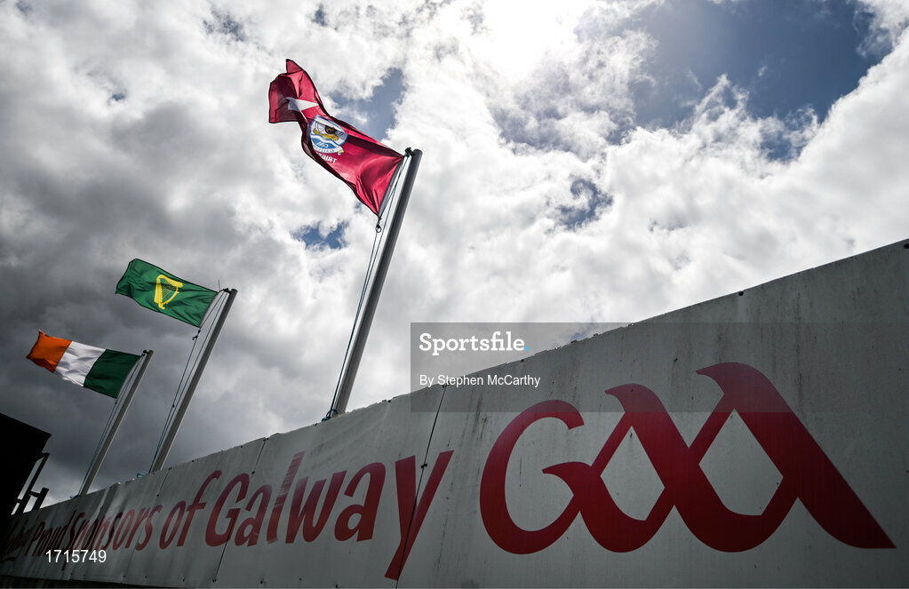 26 May 2019; A Galway flag flies in Pearse Stadium prior to the Leinster GAA Hurling Senior Championship Round 3A match between Galway and Wexford at Pearse Stadium in Galway. Photo by Stephen McCarthy/Sportsfile