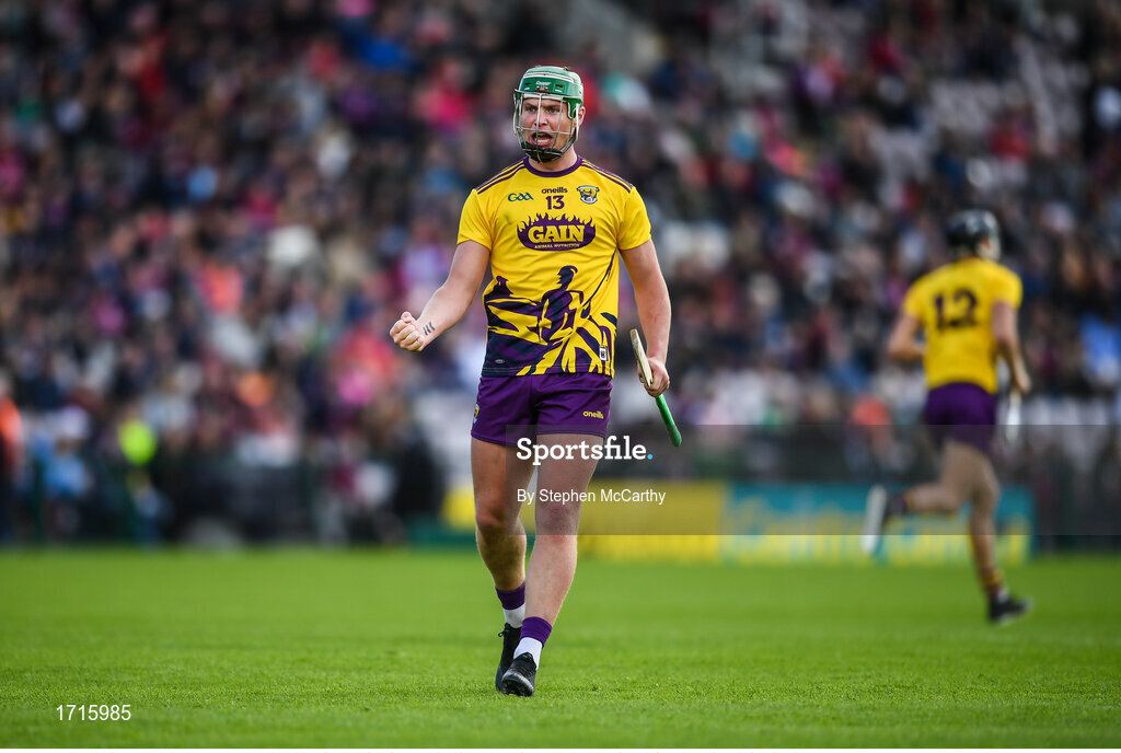26 May 2019; Conor McDonald of Wexford celebrates a score during the Leinster GAA Hurling Senior Championship Round 3A match between Galway and Wexford at Pearse Stadium in Galway. Photo by Stephen McCarthy/Sportsfile