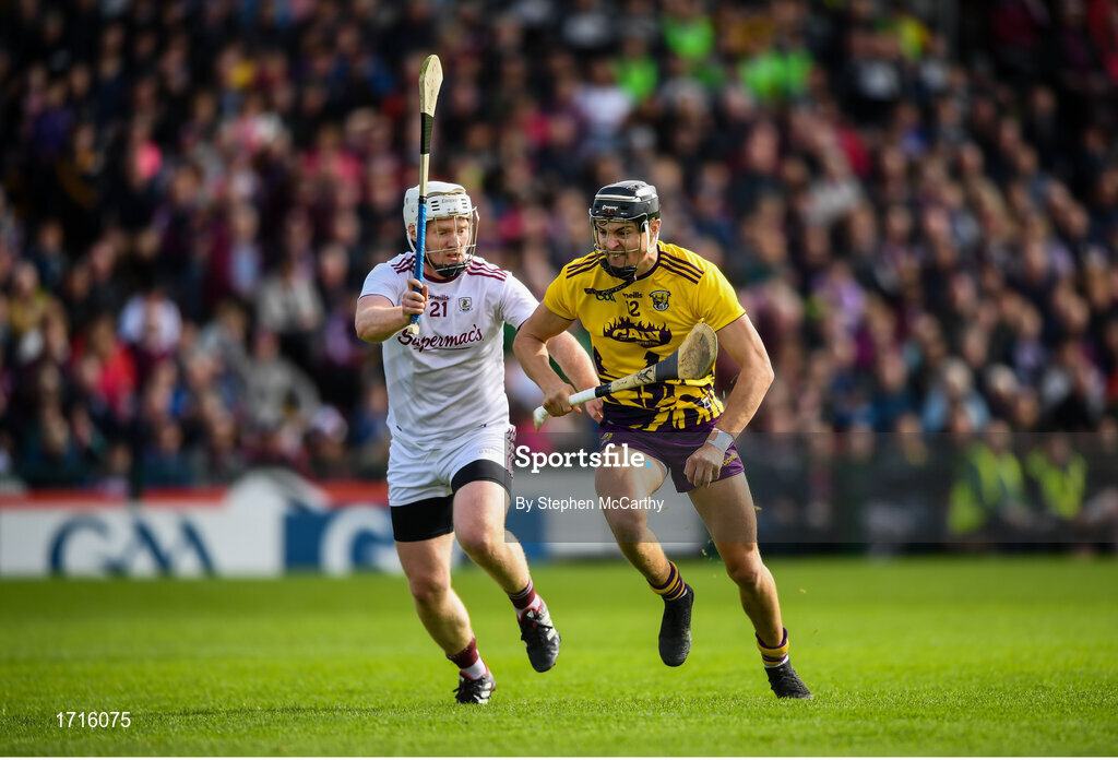 26 May 2019; Jack O'Connor of Wexford in action against John Hanbury of Galway during the Leinster GAA Hurling Senior Championship Round 3A match between Galway and Wexford at Pearse Stadium in Galway. Photo by Stephen McCarthy/Sportsfile