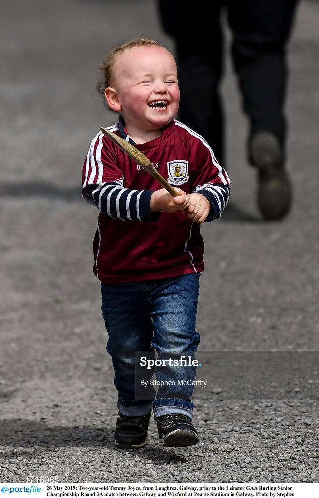 26 May 2019; Two-year-old Tommy Joyce, from Loughrea, Galway, prior to the Leinster GAA Hurling Senior Championship Round 3A match between Galway and Wexford at Pearse Stadium in Galway. Photo by Stephen McCarthy/Sportsfile