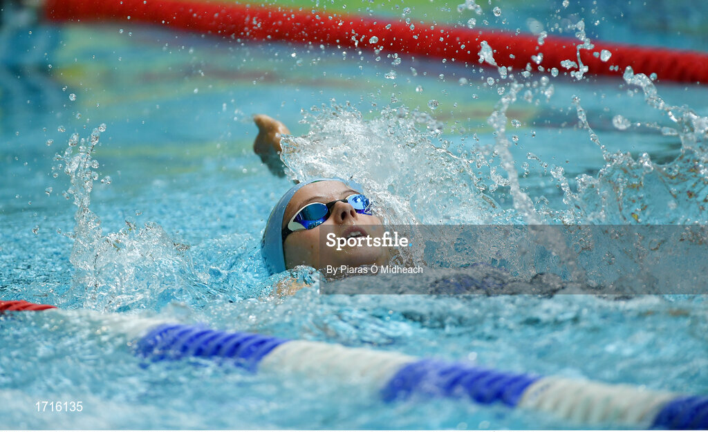 26 May 2019; Anna Cannon of Dalkey, Co Dublin, competing in the Backstroke U16 event during Day 2 of the Aldi Community Games May Festival, which saw over 3,500 children take part in a fun-filled weekend at University of Limerick. Photo by Piaras Ó Mídheach/Sportsfile