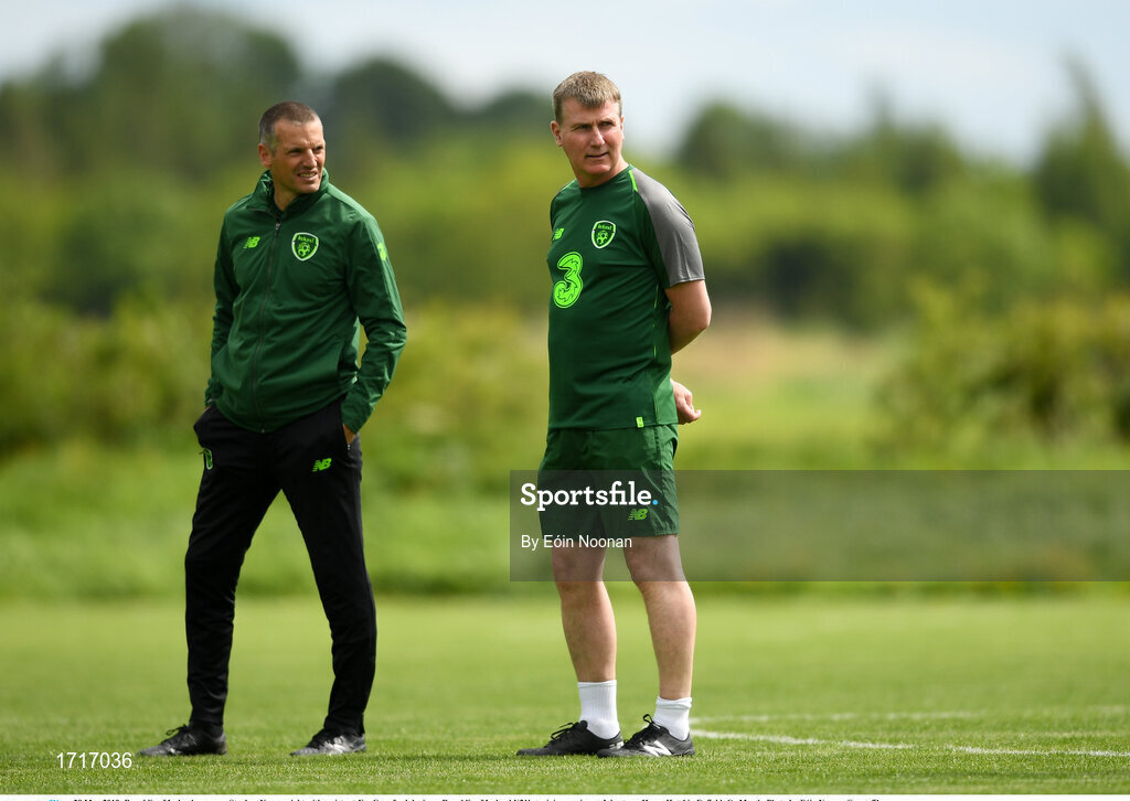 28 May 2019; Republic of Ireland manager Stephen Kenny, right with assistant Jim Crawford during a Republic of Ireland U21's training session at Johnstown House Hotel in Enfield, Co Meath. Photo by Eóin Noonan/Sportsfile