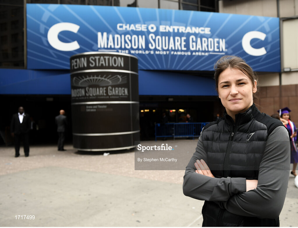 29 May 2019; Katie Taylor poses for a portrait following a press conference at Madison Square Garden ahead of her IBO, WBA, WBC & WBO unification bout with Delfine Persoon in New York, USA. Photo by Stephen McCarthy/Sportsfile