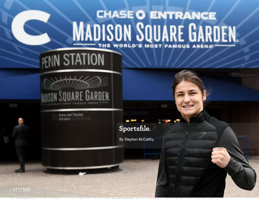 29 May 2019; Katie Taylor poses for a portrait following a press conference at Madison Square Garden ahead of her IBO, WBA, WBC & WBO unification bout with Delfine Persoon in New York, USA. Photo by Stephen McCarthy/Sportsfile