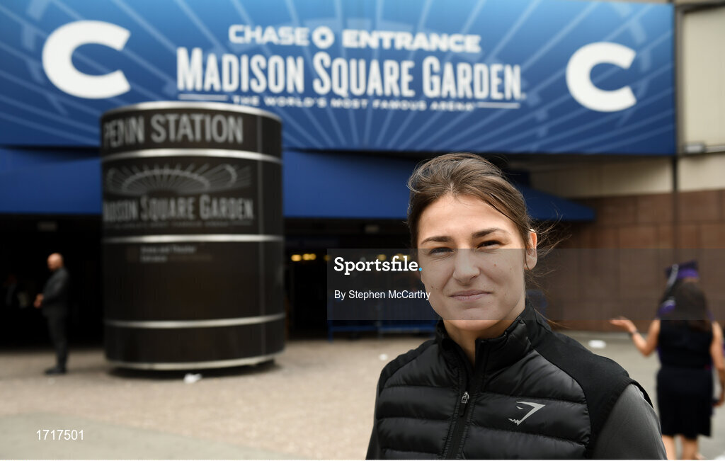 29 May 2019; Katie Taylor poses for a portrait following a press conference at Madison Square Garden ahead of her IBO, WBA, WBC & WBO unification bout with Delfine Persoon in New York, USA. Photo by Stephen McCarthy/Sportsfile