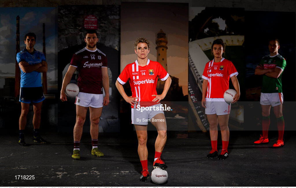 30 May 2019; In attendance at SuperValu GAA Sponsorship Launch 2019 at D-Light Studios in Dublin are, from left, Bernard Brogan of Dublin, Damien Comer of Galway, Valerie Mulcahy of Cork, Doireann O’Sullivan of Cork and Andy Moran of Mayo. SuperValu today launched their 10th year as sponsor of the GAA Football All-Ireland Senior Championship. Joined by their GAA ambassadors Bernard Brogan, Andy Moran, Damien Comer, Doireann O’Sullivan and Valerie Mulcahy – SuperValu revealed that they will contribute over €2.6 million to the GAA and GAA Clubs across the country, this year. Throughout their 10-years as GAA sponsor, SuperValu has contributed over €18 million to aid the development of our national sport. Photo by Sam Barnes/Sportsfile