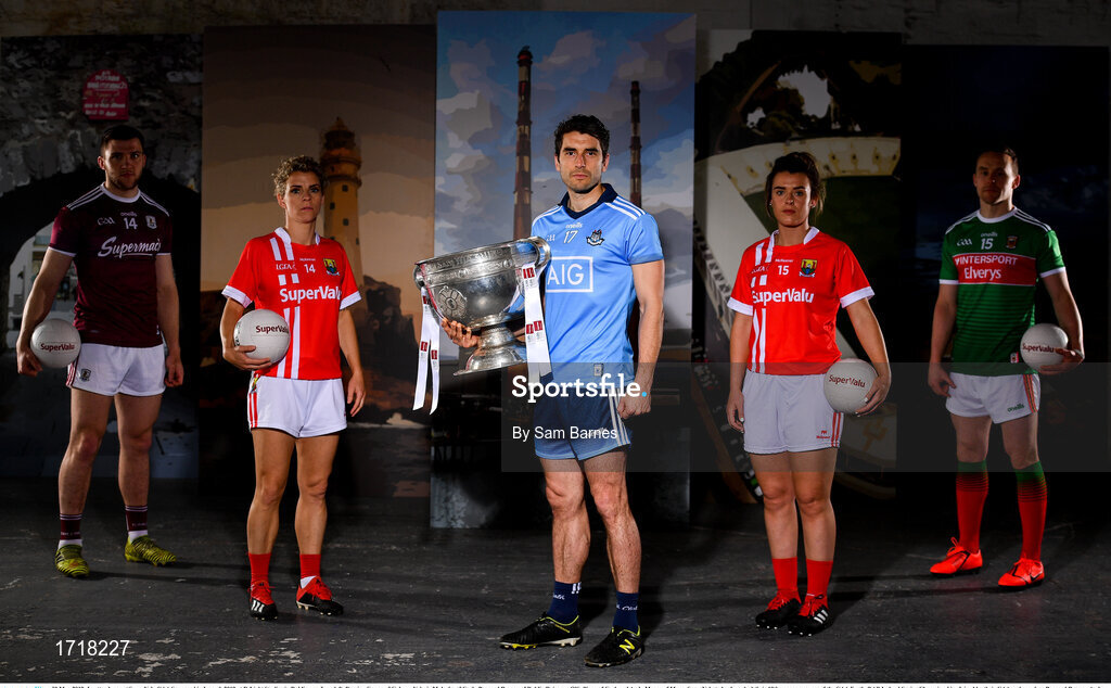 30 May 2019; In attendance at SuperValu GAA Sponsorship Launch 2019 at D-Light Studios in Dublin are, from left, Damien Comer of Galway, Valerie Mulcahy of Cork, Bernard Brogan of Dublin Doireann O’Sullivan of Cork and Andy Moran of Mayo. SuperValu today launched their 10th year as sponsor of the GAA Football All-Ireland Senior Championship. Joined by their GAA ambassadors Bernard Brogan, Andy Moran, Damien Comer, Doireann O’Sullivan and Valerie Mulcahy – SuperValu revealed that they will contribute over €2.6 million to the GAA and GAA Clubs across the country, this year. Throughout their 10-years as GAA sponsor, SuperValu has contributed over €18 million to aid the development of our national sport. Photo by Sam Barnes/Sportsfile