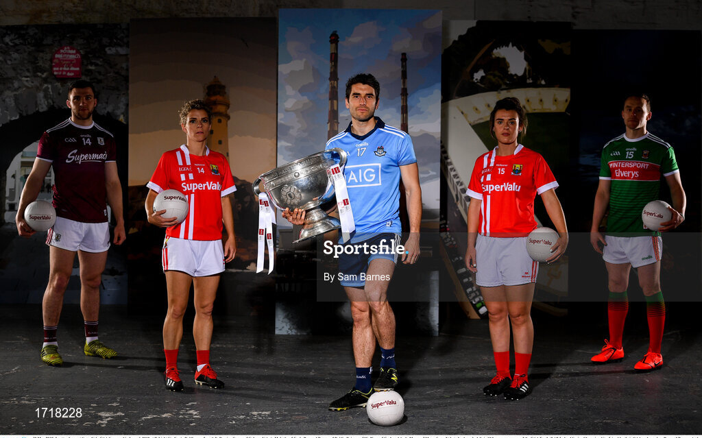 30 May 2019; In attendance at SuperValu GAA Sponsorship Launch 2019 at D-Light Studios in Dublin are, from left, Damien Comer of Galway, Valerie Mulcahy of Cork, Bernard Brogan of Dublin Doireann O’Sullivan of Cork and Andy Moran of Mayo. SuperValu today launched their 10th year as sponsor of the GAA Football All-Ireland Senior Championship. Joined by their GAA ambassadors Bernard Brogan, Andy Moran, Damien Comer, Doireann O’Sullivan and Valerie Mulcahy – SuperValu revealed that they will contribute over €2.6 million to the GAA and GAA Clubs across the country, this year. Throughout their 10-years as GAA sponsor, SuperValu has contributed over €18 million to aid the development of our national sport. Photo by Sam Barnes/Sportsfile
