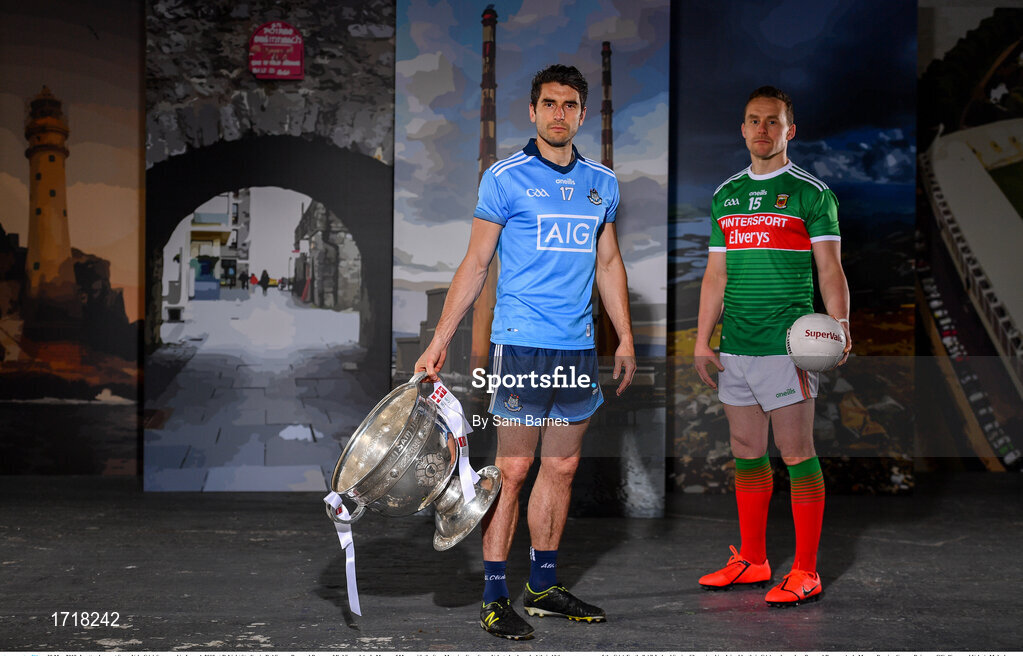 30 May 2019; In attendance at SuperValu GAA Sponsorship Launch 2019 at D-Light Studios in Dublin are Bernard Brogan of Dublin and Andy Moran of Mayo with the Sam Maguire Cup. SuperValu today launched their 10th year as sponsor of the GAA Football All-Ireland Senior Championship. Joined by their GAA ambassadors Bernard Brogan, Andy Moran, Damien Comer, Doireann O’Sullivan and Valerie Mulcahy – SuperValu revealed that they will contribute over €2.6 million to the GAA and GAA Clubs across the country, this year. Throughout their 10-years as GAA sponsor, SuperValu has contributed over €18 million to aid the development of our national sport. Photo by Sam Barnes/Sportsfile