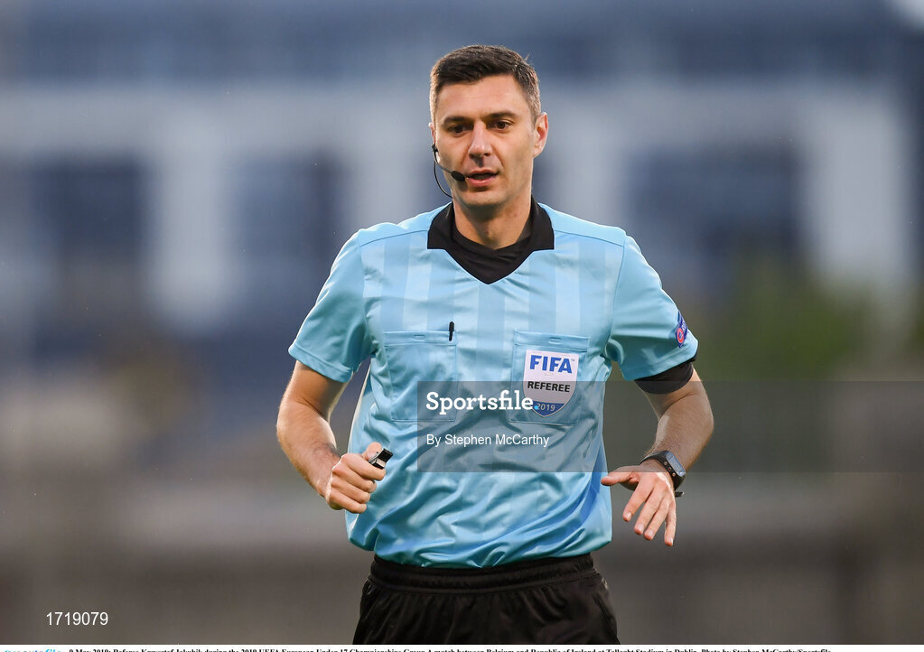 9 May 2019; Referee Krzysztof Jakubik during the 2019 UEFA European Under-17 Championships Group A match between Belgium and Republic of Ireland at Tallaght Stadium in Dublin. Photo by Stephen McCarthy/Sportsfile
