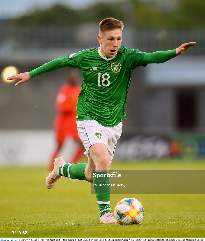 9 May 2019; Ronan McKinley of Republic of Ireland during the 2019 UEFA European Under-17 Championships Group A match between Belgium and Republic of Ireland at Tallaght Stadium in Dublin. Photo by Stephen McCarthy/Sportsfile