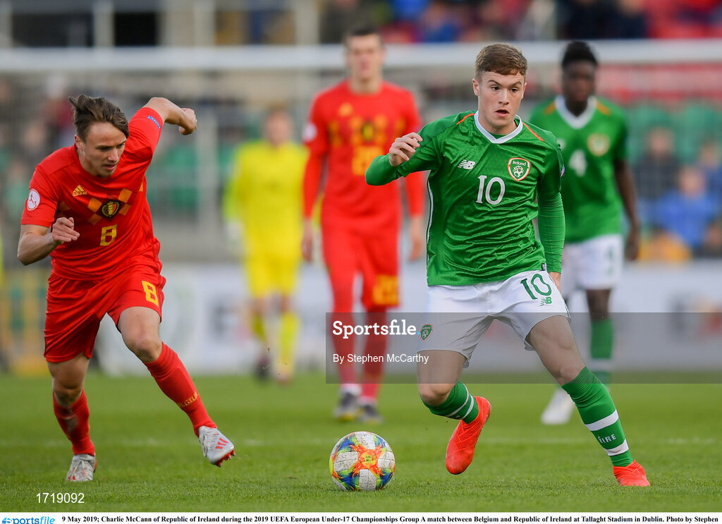9 May 2019; Charlie McCann of Republic of Ireland during the 2019 UEFA European Under-17 Championships Group A match between Belgium and Republic of Ireland at Tallaght Stadium in Dublin. Photo by Stephen McCarthy/Sportsfile
