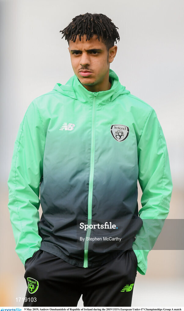 9 May 2019; Andrew Omobamidele of Republic of Ireland during the 2019 UEFA European Under-17 Championships Group A match between Belgium and Republic of Ireland at Tallaght Stadium in Dublin. Photo by Stephen McCarthy/Sportsfile