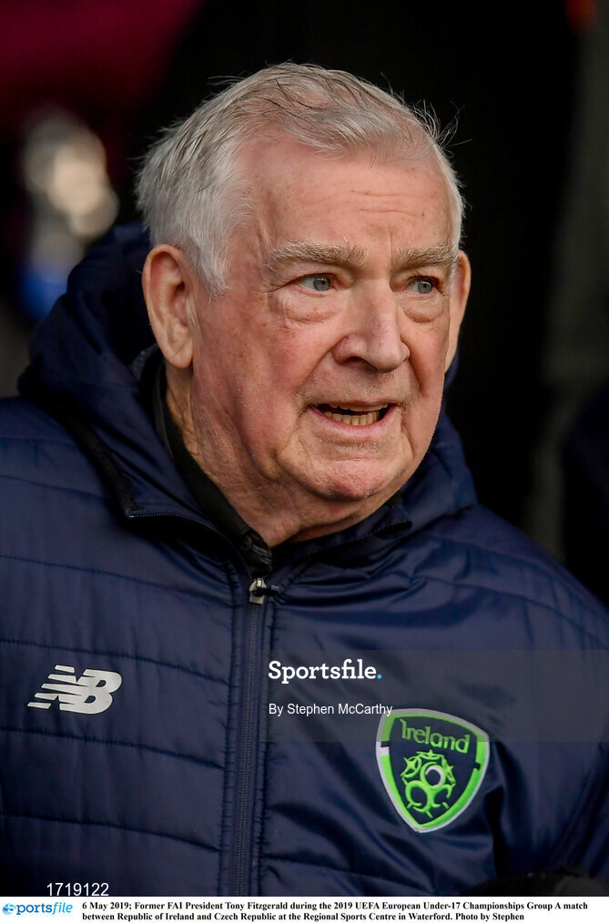 6 May 2019; Former FAI President Tony Fitzgerald during the 2019 UEFA European Under-17 Championships Group A match between Republic of Ireland and Czech Republic at the Regional Sports Centre in Waterford. Photo by Stephen McCarthy/Sportsfile