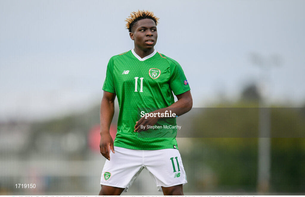 6 May 2019; Festy Ebosele of Republic of Ireland during the 2019 UEFA European Under-17 Championships Group A match between Republic of Ireland and Czech Republic at the Regional Sports Centre in Waterford. Photo by Stephen McCarthy/Sportsfile