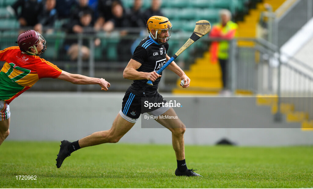 2 June 2019; Eamonn Dillon of Dublin breaks clear from Alan Corcoran of Carlow on his way to score his side's second goal during Leinster GAA Hurling Senior Championship Round 3B match between Carlow and Dublin at Netwatch Cullen Park in Carlow. Photo by Ray McManus/Sportsfile