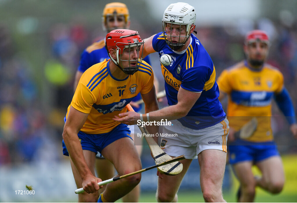 2 June 2019; Peter Duggan of Clare in action against Michael Breen of Tipperary during the Munster GAA Hurling Senior Championship Round 3 match between Clare and Tipperary at Cusack Park in Ennis, Co Clare. Photo by Piaras Ó Mídheach/Sportsfile