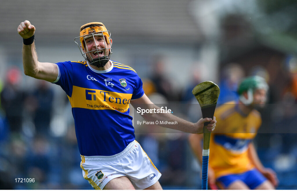 2 June 2019; Séamus Callanan of Tipperary celebrates scoring his side's second goal, which made him Tipperary's record all-time highest championship goal-scorer, during the Munster GAA Hurling Senior Championship Round 3 match between Clare and Tipperary at Cusack Park in Ennis, Co Clare. Photo by Piaras Ó Mídheach/Sportsfile