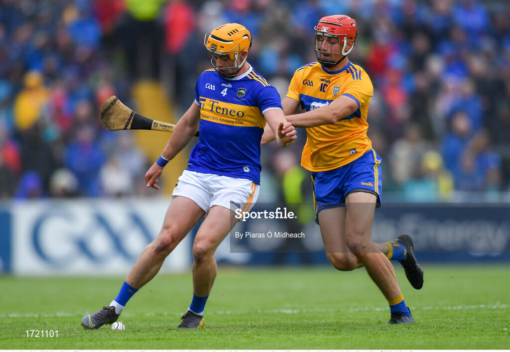 2 June 2019; Ronan Maher of Tipperary in action against Peter Duggan of Clare during the Munster GAA Hurling Senior Championship Round 3 match between Clare and Tipperary at Cusack Park in Ennis, Co Clare. Photo by Piaras Ó Mídheach/Sportsfile