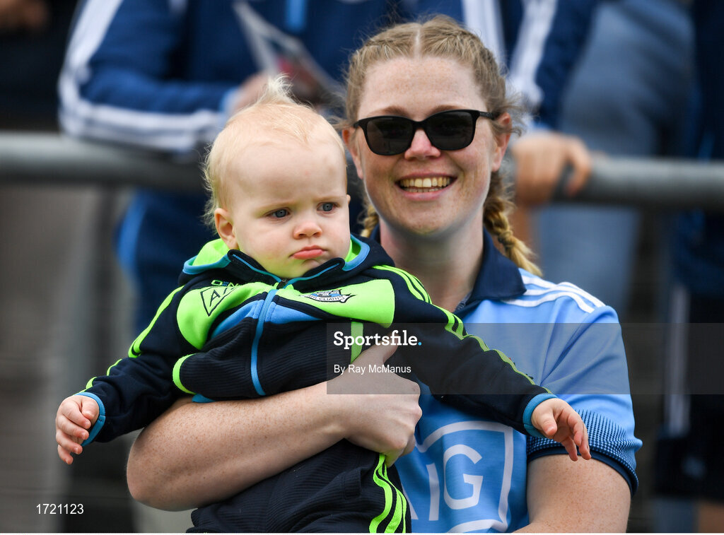 2 June 2019; Dublin supporter Eóghan Kelly Hanlon, 11 months, from Finglas, with mam Margaret during the Leinster GAA Hurling Senior Championship Round 3B match between Carlow and Dublin at Netwatch Cullen Park in Carlow. Photo by Ray McManus/Sportsfile