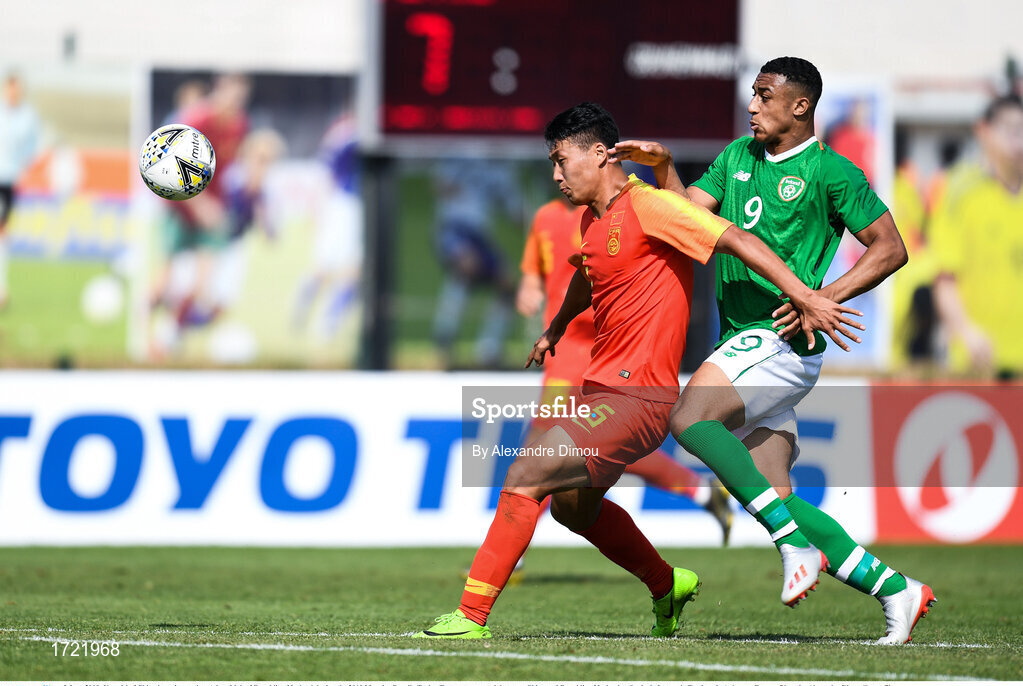 3 June 2019; Yang Li of China in action against Adam Idah of Republic of Ireland during the 2019 Maurice Revello Toulon Tournament match between China and Republic of Ireland at Stade de Lattre de Tassigny in Aubagne, France. Photo by Alexandre Dimou/Sportsfile Photo by Alexandre Dimou/Sportsfile