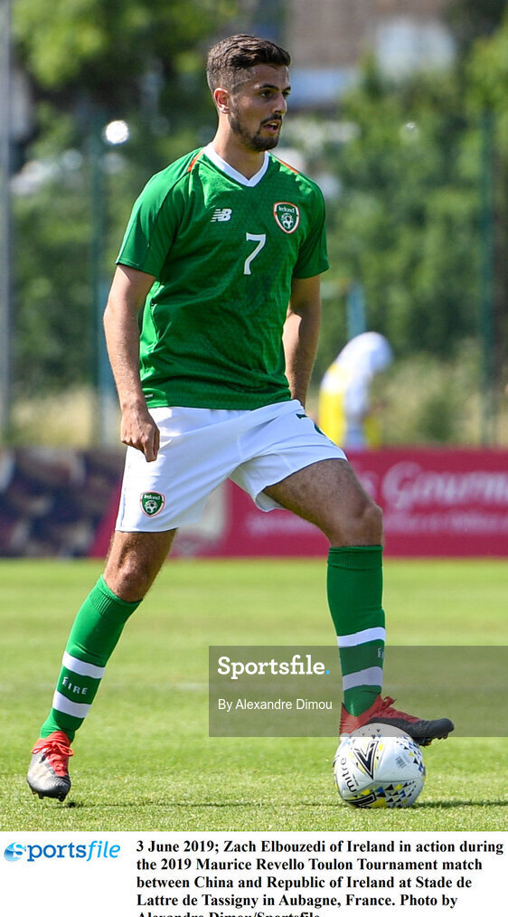 3 June 2019; Zach Elbouzedi of Ireland in action during the 2019 Maurice Revello Toulon Tournament match between China and Republic of Ireland at Stade de Lattre de Tassigny in Aubagne, France. Photo by Alexandre Dimou/Sportsfile
