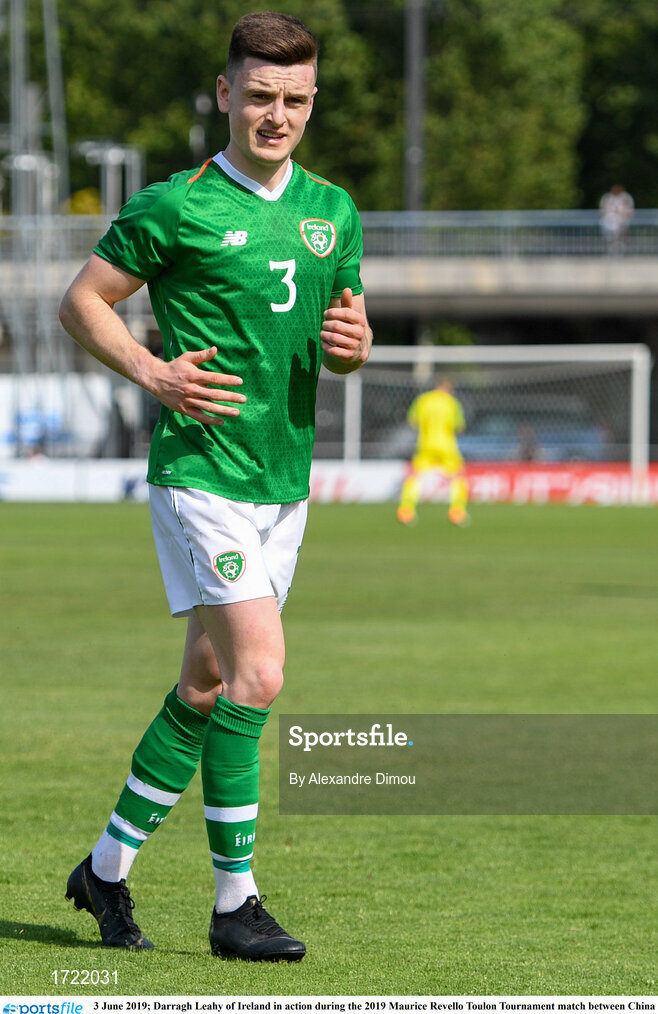 3 June 2019; Darragh Leahy of Ireland in action during the 2019 Maurice Revello Toulon Tournament match between China and Republic of Ireland at Stade de Lattre de Tassigny in Aubagne, France. Photo by Alexandre Dimou/Sportsfile