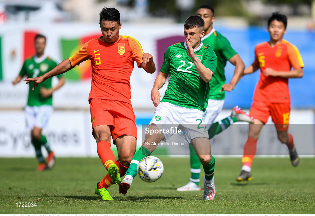 3 June 2019; Jason Knight of Ireland in action against Yang Li of China during the 2019 Maurice Revello Toulon Tournament match between China and Republic of Ireland at Stade de Lattre de Tassigny in Aubagne, France. Photo by Alexandre Dimou/Sportsfile