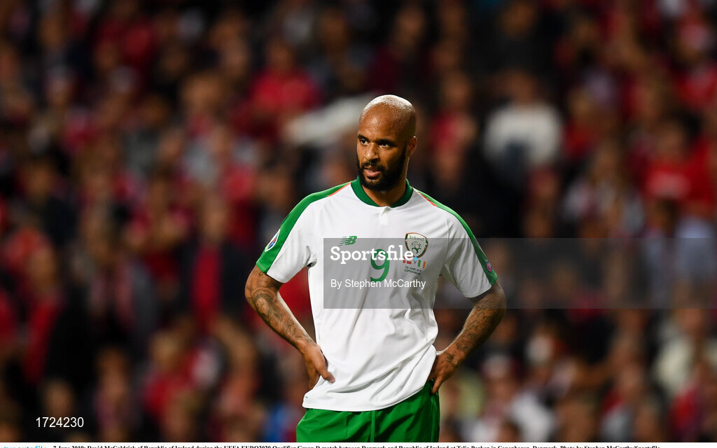 7 June 2019; David McGoldrick of Republic of Ireland during the UEFA EURO2020 Qualifier Group D match between Denmark and Republic of Ireland at Telia Parken in Copenhagen, Denmark. Photo by Stephen McCarthy/Sportsfile
