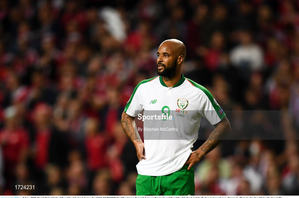 7 June 2019; David McGoldrick of Republic of Ireland during the UEFA EURO2020 Qualifier Group D match between Denmark and Republic of Ireland at Telia Parken in Copenhagen, Denmark. Photo by Stephen McCarthy/Sportsfile