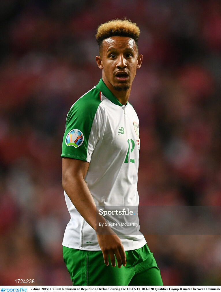 7 June 2019; Callum Robinson of Republic of Ireland during the UEFA EURO2020 Qualifier Group D match between Denmark and Republic of Ireland at Telia Parken in Copenhagen, Denmark. Photo by Stephen McCarthy/Sportsfile