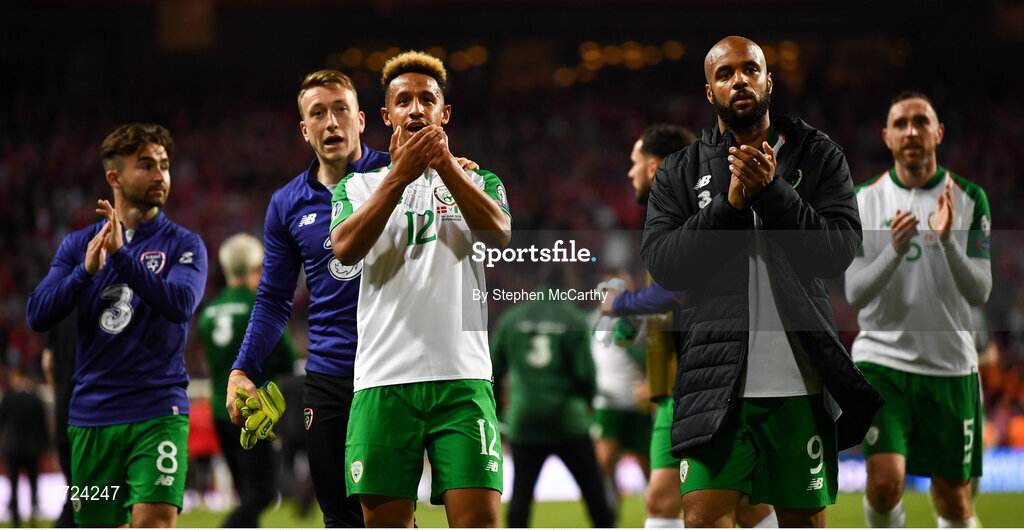 7 June 2019; Callum Robinson and David McGoldrick, right, of Republic of Ireland following the UEFA EURO2020 Qualifier Group D match between Denmark and Republic of Ireland at Telia Parken in Copenhagen, Denmark. Photo by Stephen McCarthy/Sportsfile