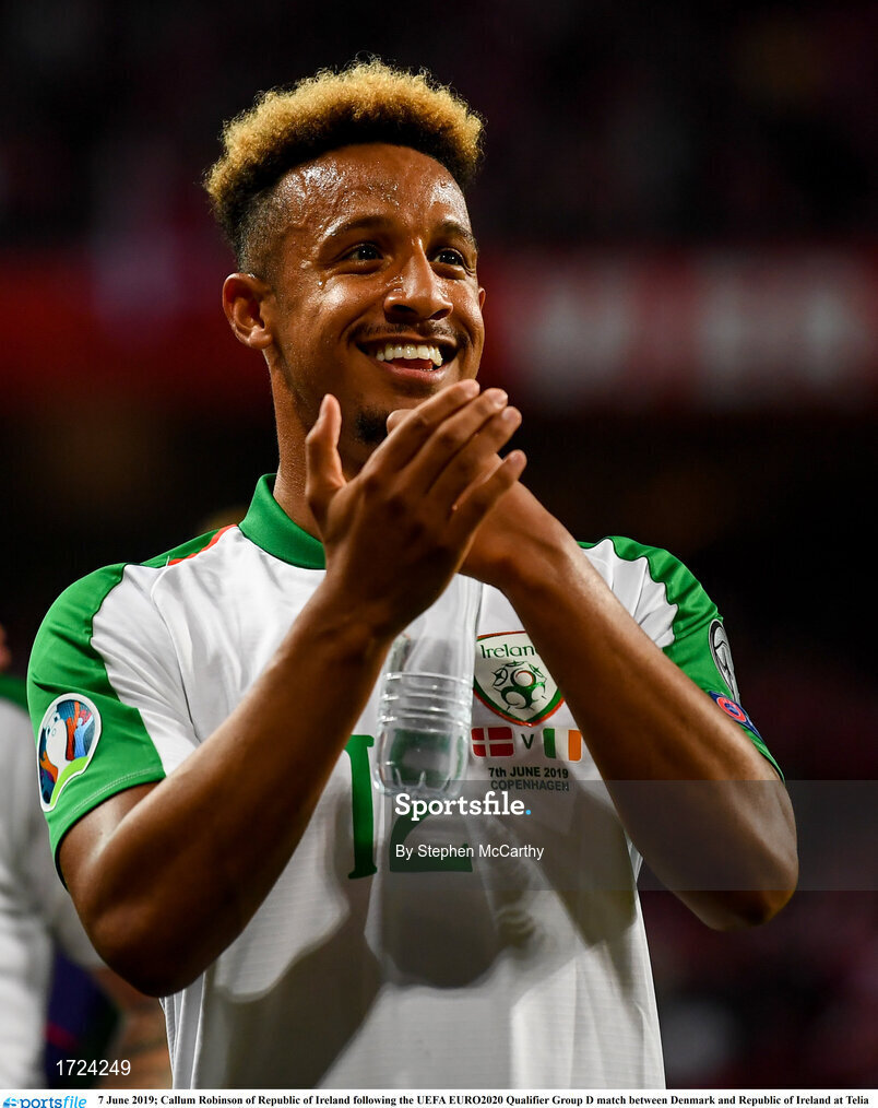 7 June 2019; Callum Robinson of Republic of Ireland following the UEFA EURO2020 Qualifier Group D match between Denmark and Republic of Ireland at Telia Parken in Copenhagen, Denmark. Photo by Stephen McCarthy/Sportsfile