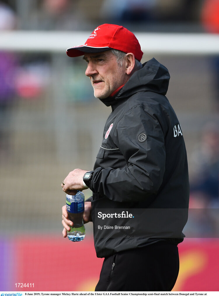 8 June 2019; Tyrone manager Mickey Harte ahead of the Ulster GAA Football Senior Championship semi-final match between Donegal and Tyrone at Kingspan Breffni Park in Cavan. Photo by Daire Brennan/Sportsfile
