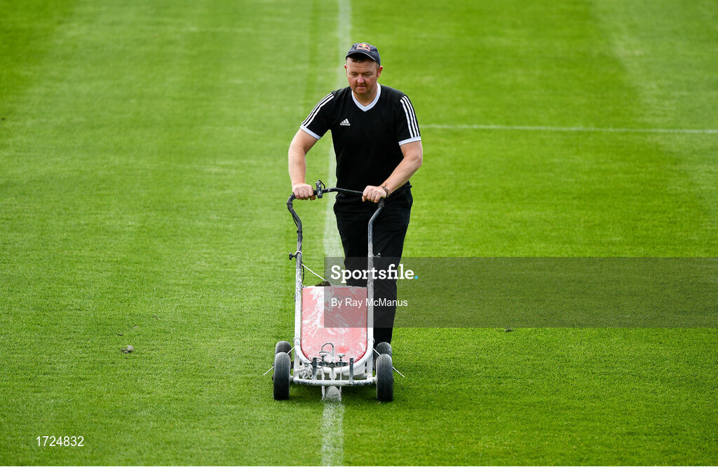 9 June 2019; John Coogan, head groundsman, lines the pitch before the Leinster GAA Hurling Senior Championship Round 4 match between Kilkenny and Galway at Nowlan Park in Kilkenny. Photo by Ray McManus/Sportsfile