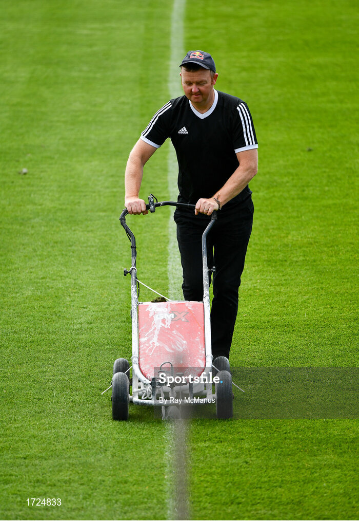 9 June 2019; John Coogan, head groundsman, lines the pitch before the Leinster GAA Hurling Senior Championship Round 4 match between Kilkenny and Galway at Nowlan Park in Kilkenny. Photo by Ray McManus/Sportsfile