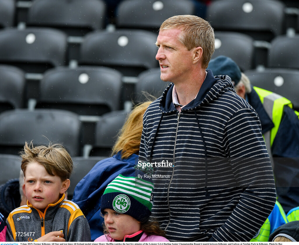 9 June 2019; Former Kilkenny All Star and ten times All Ireland medal winner Henry Shefflin watches the last few minutes of the Leinster GAA Hurling Senior Championship Round 4 match between Kilkenny and Galway at Nowlan Park in Kilkenny. Photo by Ray McManus/Sportsfile