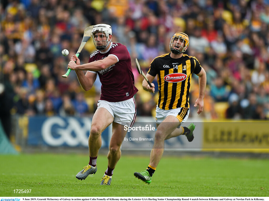 9 June 2019; Gearoid McInerney of Galway in action against Colin Fennelly of Kilkenny during the Leinster GAA Hurling Senior Championship Round 4 match between Kilkenny and Galway at Nowlan Park in Kilkenny. Photo by Daire Brennan/Sportsfile