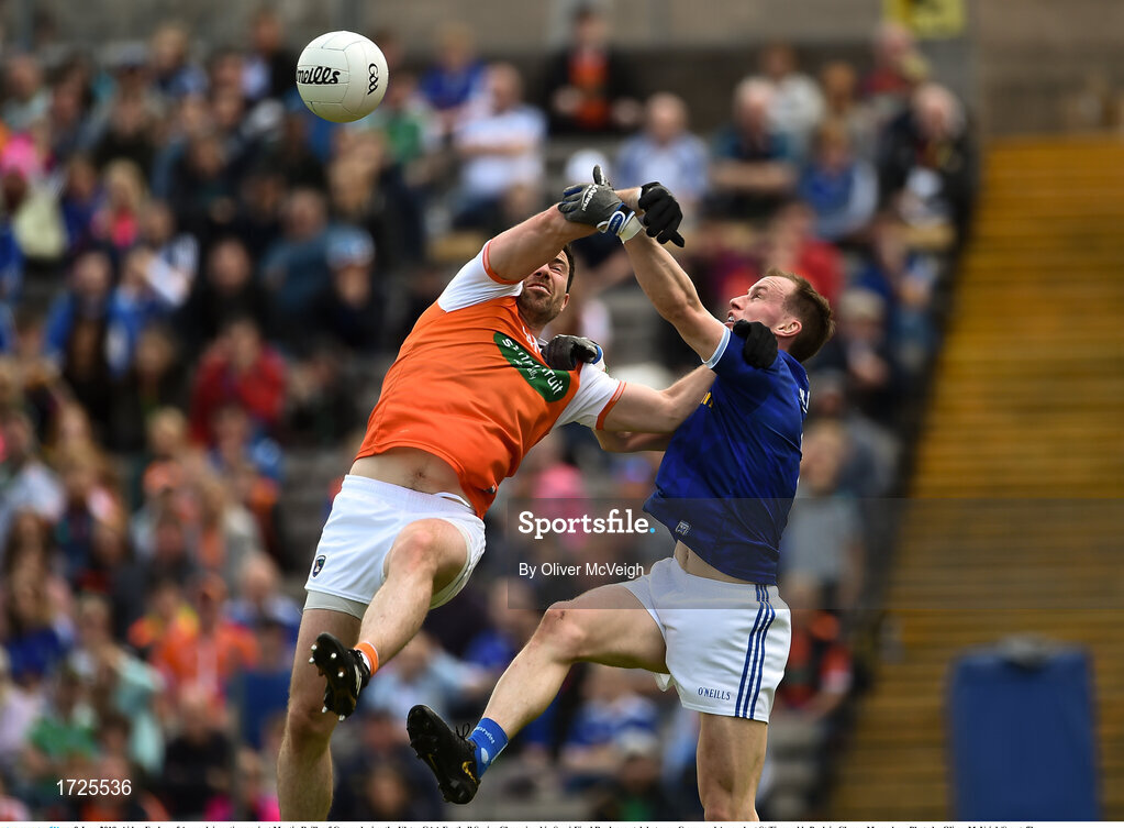 9 June 2019; Aidan Forker of Armagh in action against Martin Reilly of Cavan during the Ulster GAA Football Senior Championship Semi-Final Replay match between Cavan and Armagh at St Tiarnach's Park in Clones, Monaghan. Photo by Oliver McVeigh/Sportsfile