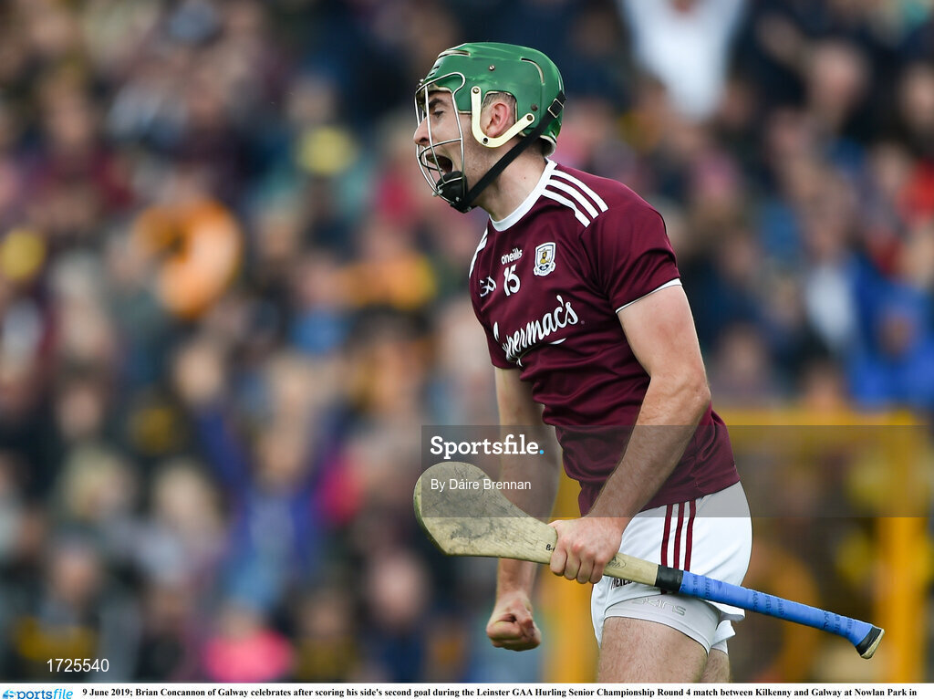 9 June 2019; Brian Concannon of Galway celebrates after scoring his side's second goal during the Leinster GAA Hurling Senior Championship Round 4 match between Kilkenny and Galway at Nowlan Park in Kilkenny. Photo by Daire Brennan/Sportsfile