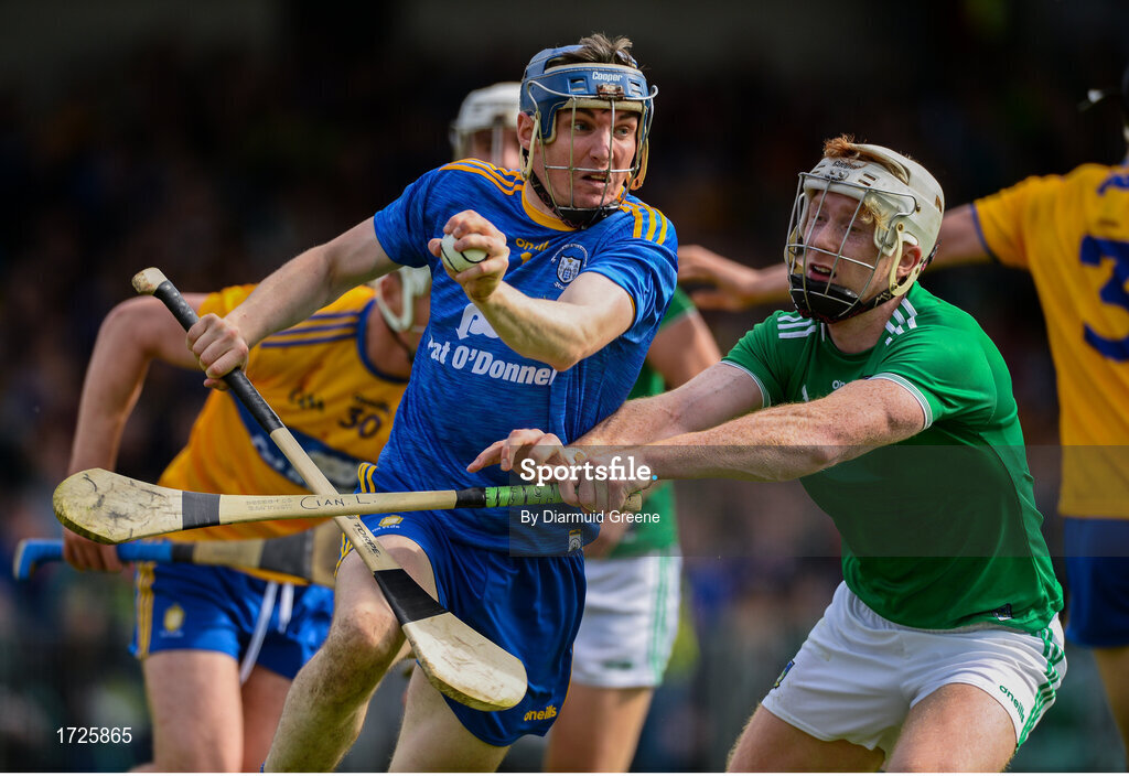 9 June 2019; Donal Tuohy of Clare in action against Cian Lynch of Limerick during the Munster GAA Hurling Senior Championship Round 4 match between Limerick and Clare at the LIT Gaelic Grounds in Limerick. Photo by Diarmuid Greene/Sportsfile
