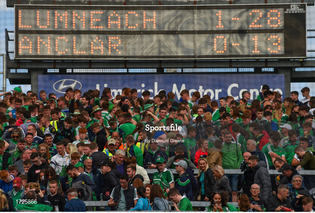 9 June 2019; A general view of the final score on the scoreboard after the Munster GAA Hurling Senior Championship Round 4 match between Limerick and Clare at the LIT Gaelic Grounds in Limerick. Photo by Diarmuid Greene/Sportsfile