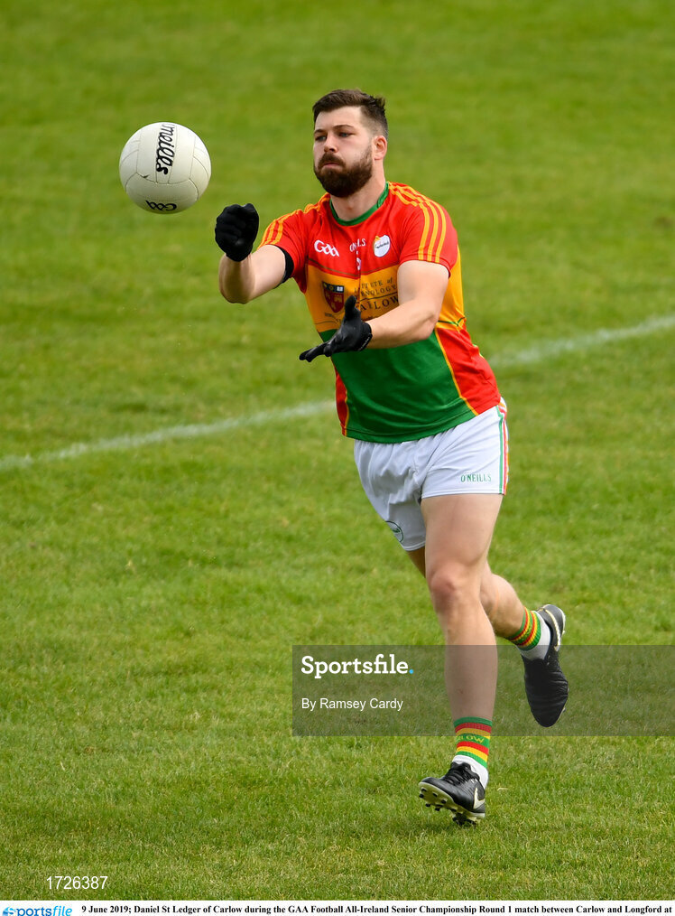 9 June 2019; Daniel St Ledger of Carlow during the GAA Football All-Ireland Senior Championship Round 1 match between Carlow and Longford at Netwatch Cullen Park in Carlow. Photo by Ramsey Cardy/Sportsfile