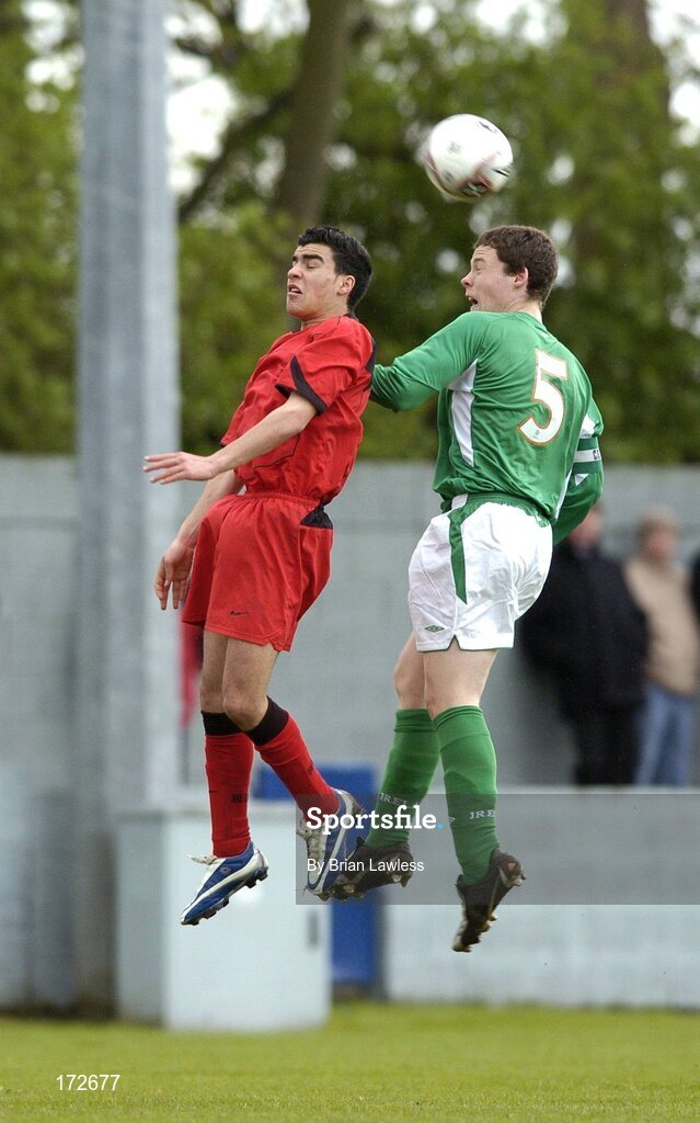 7 April 2005; David Joyce, Republic of Ireland U15, in action against Kerem Zevne, Belgium U15. U15 Friendly International, Republic of Ireland U15 v Belgium U15, Home Farm FC, Whitehall, Dublin. Picture credit; Brian Lawless / SPORTSFILE